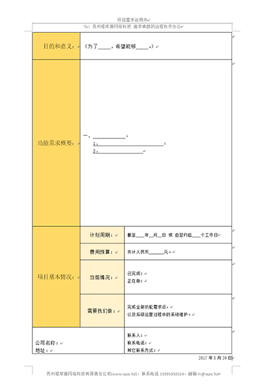 下载Word模板[.docx格式](失效待补) - 参考下方的【需求样本】示例,根据您的实际情况填写(如果有其它说明资料也可打包发送给我们)。